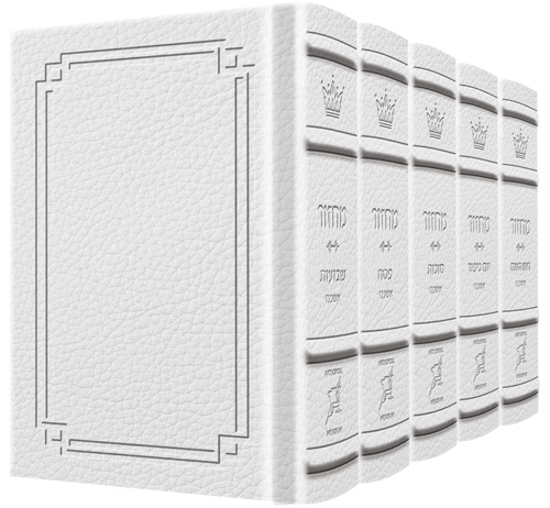Signature Leather Collection Ashkenaz HEBREW/ENGLISH Full-Size 5 Vol Machzor SET White