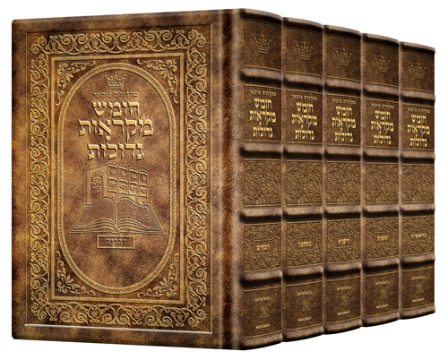 Czuker Edition HEBREW Chumash Mikra'os Gedolos Slipcased SET Hand-Tooled Chestnut Leather