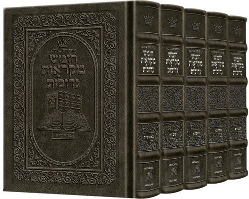 Czuker Edition HEBREW Chumash Mikra'os Gedolos Slipcased SET Hand-Tooled Grey Leather