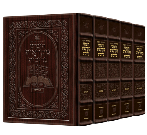 Czuker Edition HEBREW Chumash Mikra'os Gedolos Slipcased SET Yerushalayim Hand-Tooled 2-Tone Leather