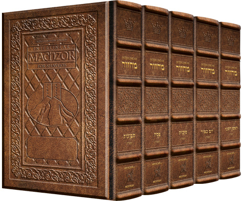 Sefard Yerushalayim Chestnut Brown Leather Schottenstein Ed Interlinear 5 VL Machzor SET